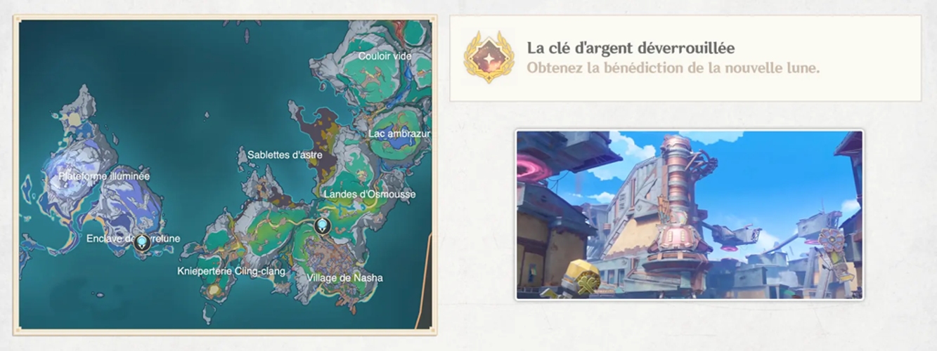 Au cœur de la région de Nod-Krai, dans le petit village de Nasha, débute une quête mystérieuse intitulée « Élégie de la poussière et des lanternes » (chant de l’astre de la nuit – acte 2), qui recèle en son sein quatre réalisations secrètes.