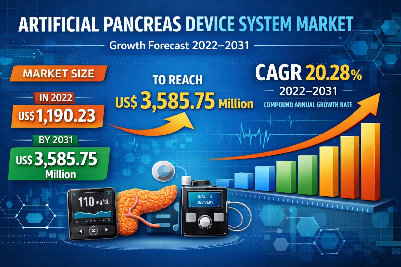 The Artificial Pancreas Device System Market is witnessing strong expansion, driven by the rising global burden of diabetes and continuous technological innovation in automated insulin delivery. The market is projected to reach US$ 3,585.75 million by 2031 from US$ 1,190.23 million in 2022, registering a CAGR of 20.28% during 2022 to 2031. The increasing preference for advanced diabetes management systems that reduce patient intervention is a major contributor to this growth trajectory.
