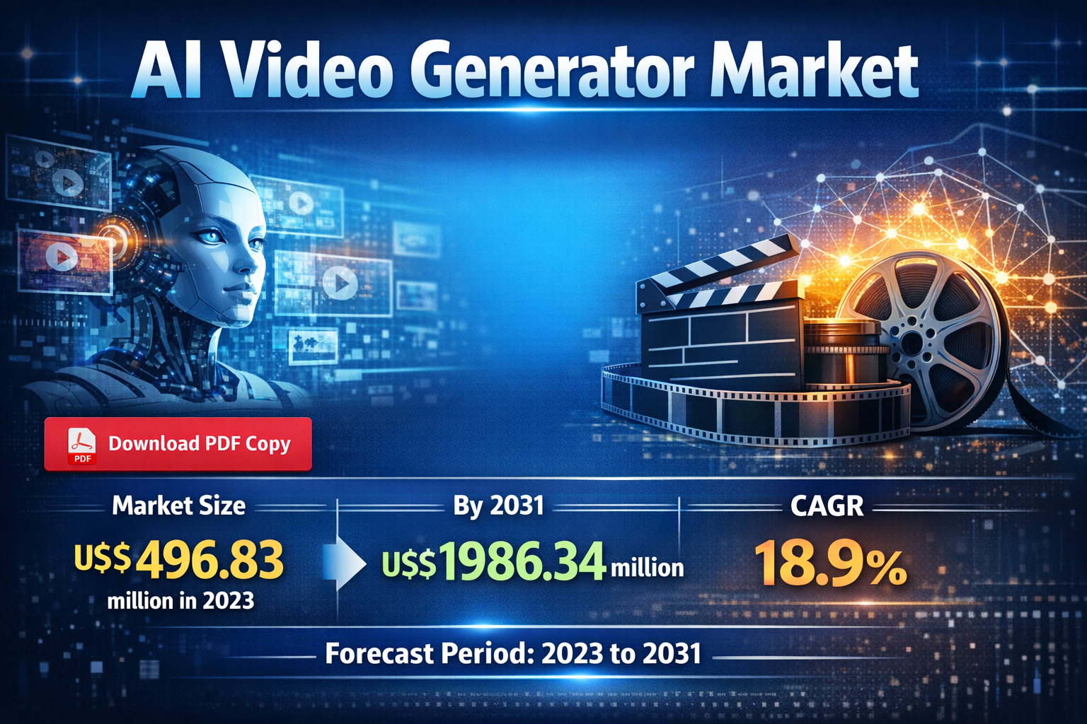 The global AI video generator market is experiencing a significant transformation, driven by advancements in artificial intelligence (AI) and machine learning technologies. As businesses increasingly seek innovative solutions for content creation, the demand for AI-driven video generation is projected to surge. According to the insight partners, the AI video generator market size is projected to reach US$ 1986.34 million by 2031 from US$ 496.83 million in 2023. The market is expected to register a CAGR of 18.9% in 2023–2031. reflecting the growing importance of video content in marketing and communication strategies.