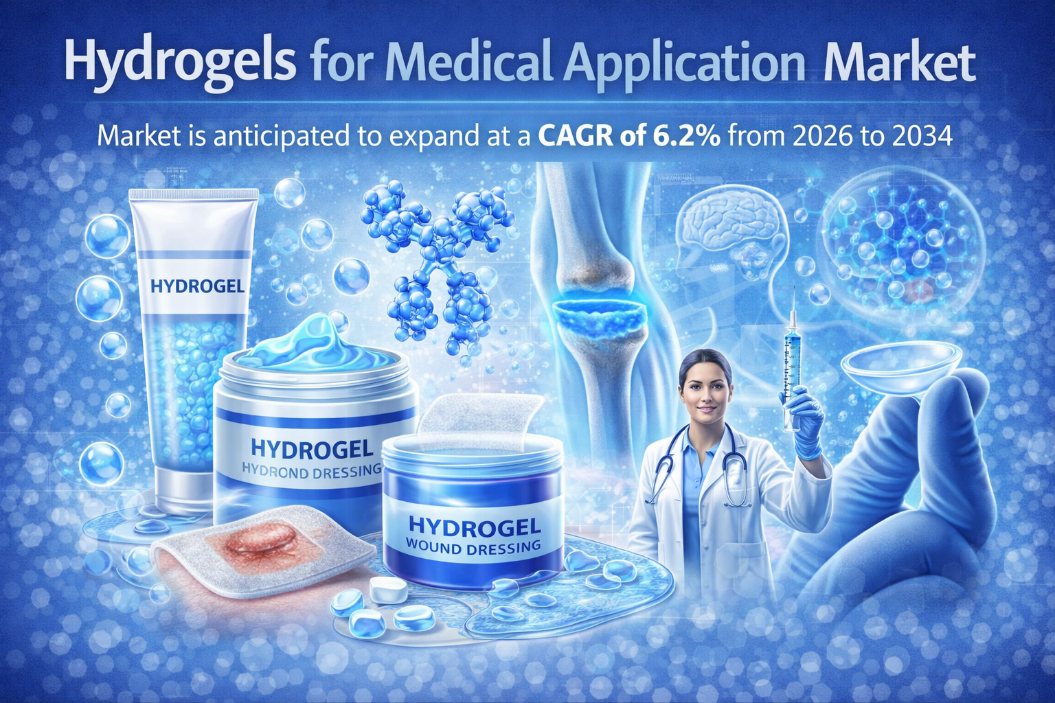 According to industry insights, the Hydrogels for Medical Application Market is anticipated to expand at a CAGR of 6.2% from 2026 to 2034, reflecting steady growth supported by technological advancements and rising healthcare needs.