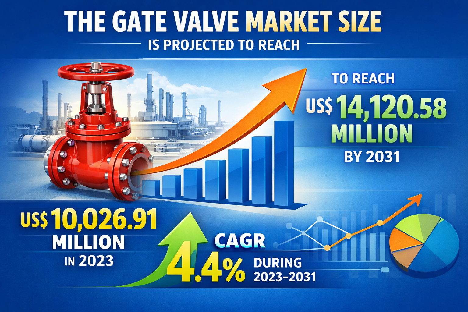 The gate valve market size is projected to reach US$ 14,120.58 million by 2031 from US$ 10,026.91 million in 2023. The market is expected to register a CAGR of 4.4% during 2023–2031. Gate valves serve as critical components in industrial piping systems, designed primarily for isolation services. By moving a disc or gate into the path of the fluid flow, these valves provide a tight seal and minimize pressure loss when fully opened. Their robust design makes them suitable for a wide range of applications, particularly where a straight line flow of fluid and minimum restriction is desired.