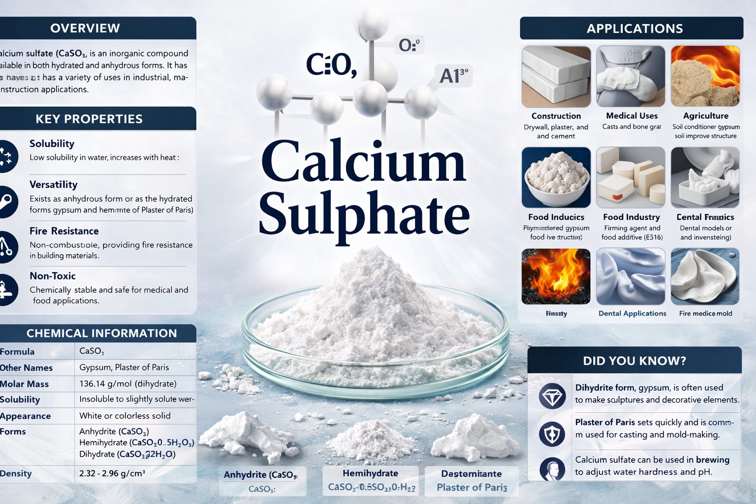 Calcium sulphate is a versatile inorganic compound valued for its high thermal stability, hardness, and chemical resistance. Its applications span construction, agriculture, pharmaceuticals, and industrial manufacturing, making it a crucial material in both traditional and advanced industries. Increasing global industrialization and infrastructure projects are driving consistent demand for calcium sulphate worldwide.