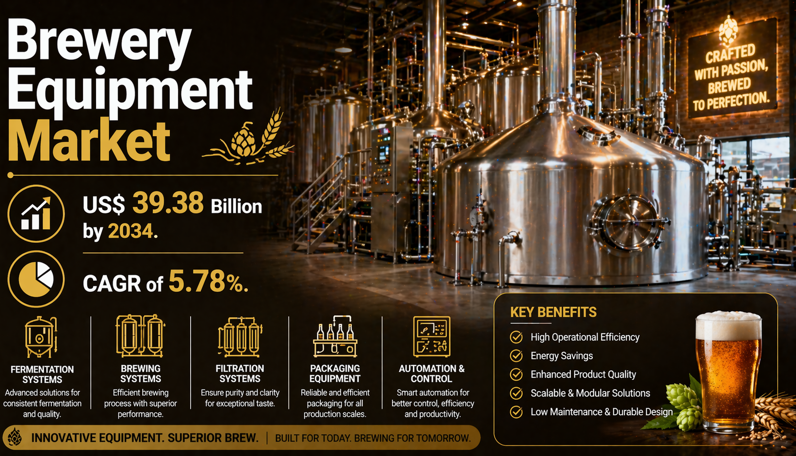 The global brewing industry is undergoing a significant transformation, driven by shifting consumer preferences and technological advancements in production. As the demand for diverse beer styles ranging from traditional lagers to innovative craft ales continues to surge, the infrastructure supporting this production is evolving rapidly. According to the latest analysis, the Brewery Equipment Market is expected to register a CAGR of 5.78% from 2026 to 2034, with the market size expanding from US$ 23.74 Billion in 2025 to US$ 39.38 Billion by 2034.